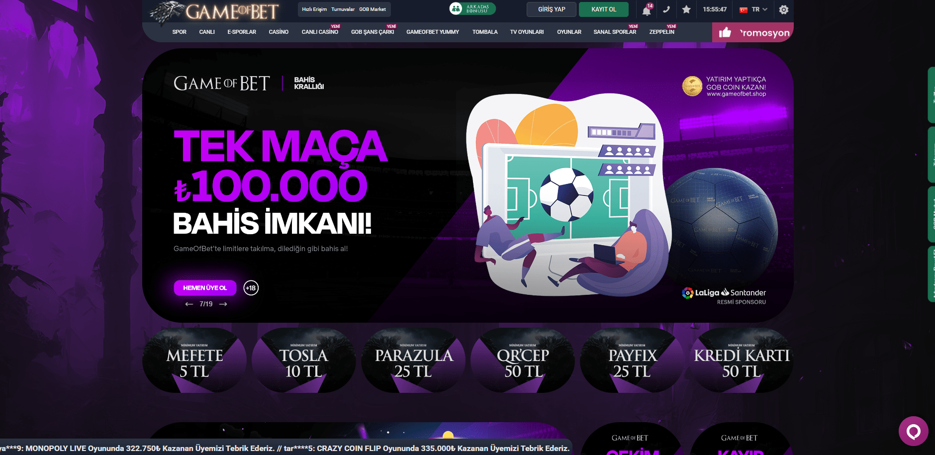Sahip olduğu lisansla güven veren Gameofbet642, curacao...